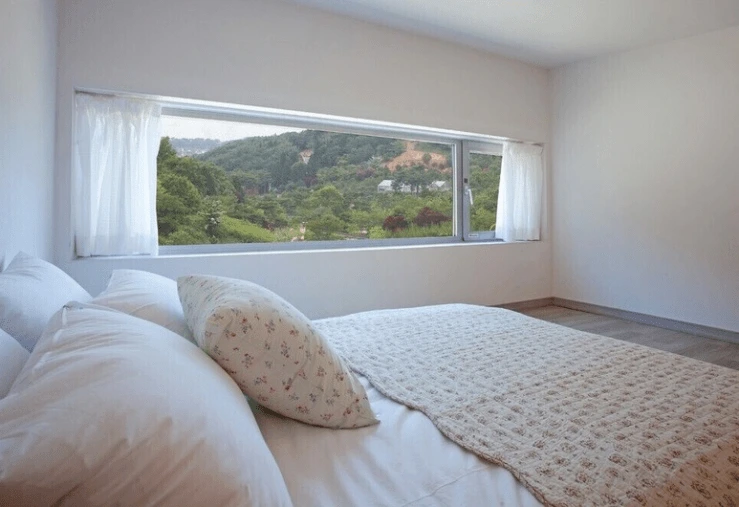 덕유산 국립공원에 자리한 무주 나봄리조트 만큼 숲캉스 하기 좋은 숙소는 없다. 모노톤으로 꾸며진 외관과 내부는 청정한 주변 경관과 근사하게 어울린다. 객실에는 커다란 창을 내어, 전망을 극대화했다.