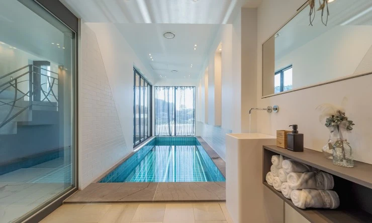 독채형 객실로 포항 알데아 풀빌라 찾은 커플과 가족 여행객에게 두루 인기가 높다. 다른 투숙객과 마주할 일이 없다. 실내는 복층 구조로 침실과 거실, 주방, 욕실, 개별 풀장으로 구성됐다.