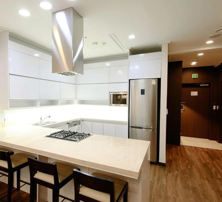 객실에는 웬만한 취사도구와 냉장고, 전자레인지. 식기세척기 등 모두 갖고 있어 편안히 머물 수 있다!
