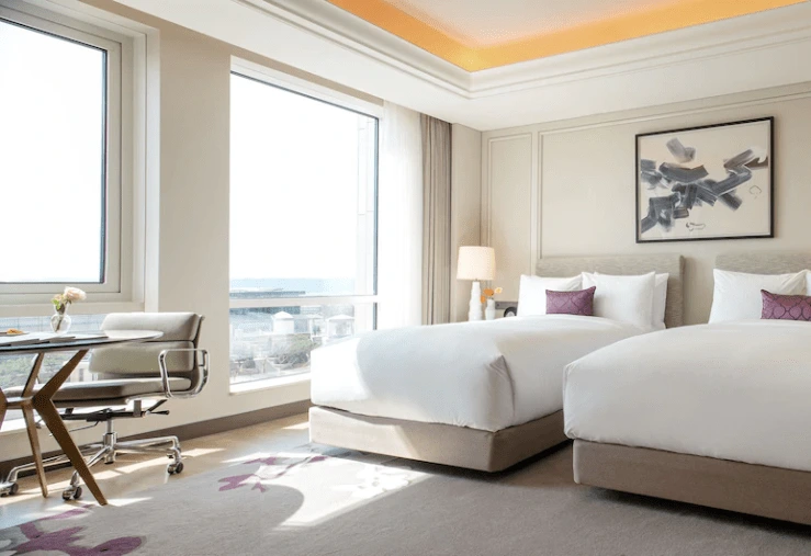 모던하면서도 아늑한 분위기가 인상적인 디럭스 룸은 인천 파라다이스 시티 호텔 기본 객실로, 호불호 없이 인기가 높다. 침대는 더블과 트윈 중 선택 가능하다. 객실 내 TV와 소파, 테이블, 금고, 커피포트를 갖췄다.