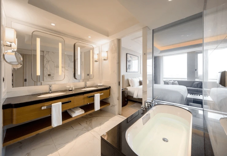 욕실에는 펜할리곤스 어메니티가 제공된다. 샴푸와 컨디셔너, 바디워시, 바디로션이 포함돼 있다. 이외 수건과 목욕용 가운, 샤워캡, 머리빗, 면봉, 에머리보드, 헤어드라이어를 비치해 놨다.