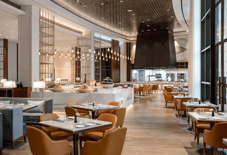 조식은 호텔 1층 레스토랑 온 더 플레이트에서 오전 6시 30분부터 10시 30분까지 운영된다. 본래는 동서양 음식으로 구성된 뷔페로 제공되나, 투숙객 안전을 위해 단품 메뉴로 변경될 수 있다.