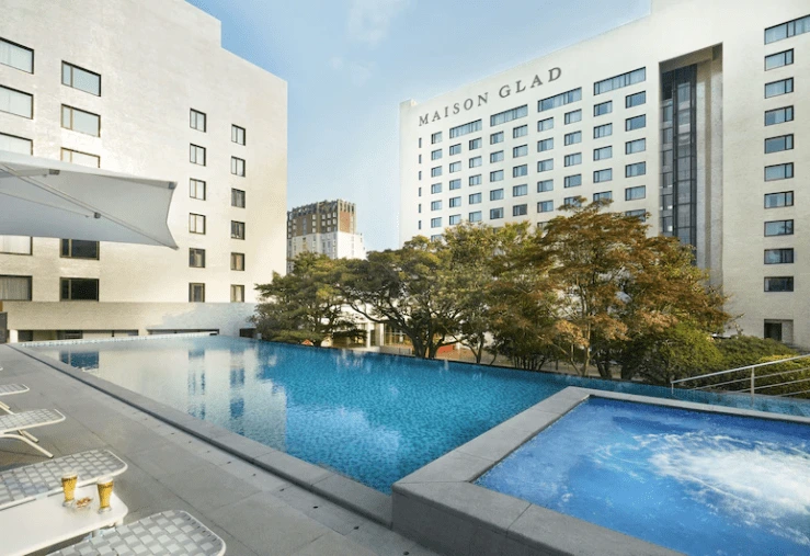 메종글래드는 총 457개의 일반 객실과 56개의 스위트 룸을 보유했다. 이중 띠띠베드와 바디프렌드, 슬로우 등과 콜라보레이션한 이색 객실도 있다. 부대시설은 액티비티와 쇼핑, 뷰티로 나뉜다. 사우나와 피트니스, 야외 수영장은 물론이고 캠핑존까지 갖췄다.