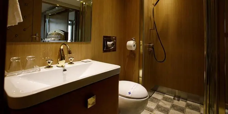 디럭스 더블룸의 욕실에는 샤워부스와 비데가 설치돼 있고, 샴푸와 컨디셔너, 바디워시, 보디로션, 비누, 수건과 샤워캡, 빗, 헤어드라이어가 어메니티로 준비되어 있다. 치약과 칫솔은 유료이니 참고하자.
