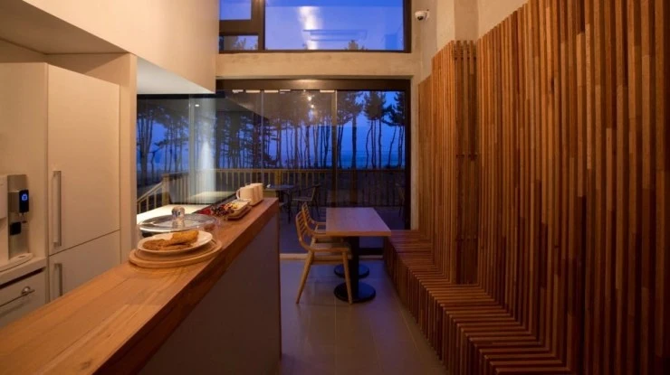 라헨느풀빌라 1층에는 카페가 운영되고 있다. 아침에는 조식 픽업 장소로 활용되지만, 평소에는 오션뷰 카페로 멋진 전망을 자랑한다! 특히 투숙객들은 무료로 웰컴 음료를 즐길 수 있으니 꼭 방문해보자.