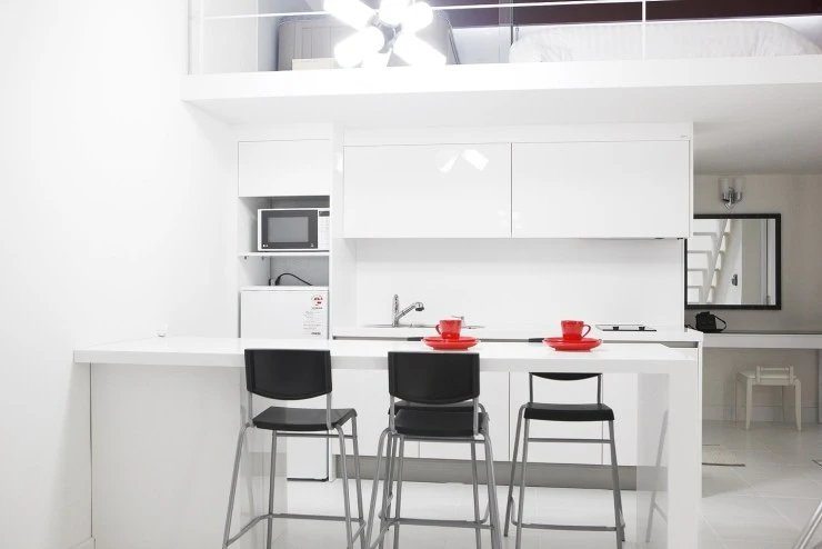 거실과 침실이 분리되어 있고 취사가 가능한 주방도 갖추고 있다. 식탁, 냉장고, 전자레인지, 커피포트 등 구비되어 있다.