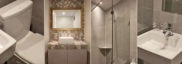 욕실 어메니티로는 바디워시, 바디로션, 샴푸, 린스 등이 준비된다 수건과 헤어드라이어도 구비되어 있으니 개인 칫솔과 치약, 클렌징폼, 면도기 정도만 챙겨 와도 된다.