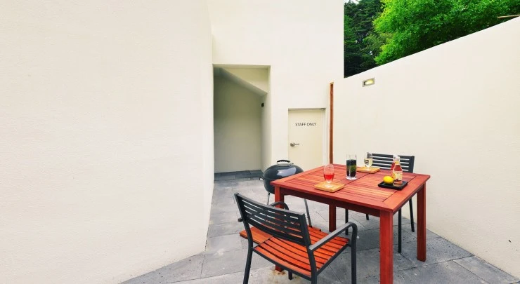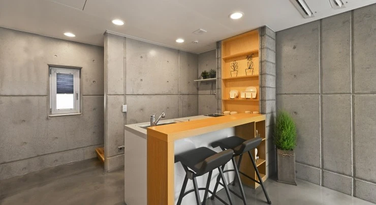 객실은 그레이톤으로 모던함을 강조하고 따뜻한 우드톤의 가구를 함께 배치해 너무 차갑지 않게 꾸몄다. 강릉 펜션의 가장 큰 장점은 멋진 뷰! 넓은 가로 창 너머로는 푸르른 소나무 숲을, 천창으로는 파란 하늘을 볼 수 있다. 홈바와 바비큐 가능한 개별 테라스도 보유하고 있어 펜캉스에 딱인 강릉 독채펜션이다. 101호에는 히노끼 노천탕도 있으니 먼저 예약하는 사람이 임자!
