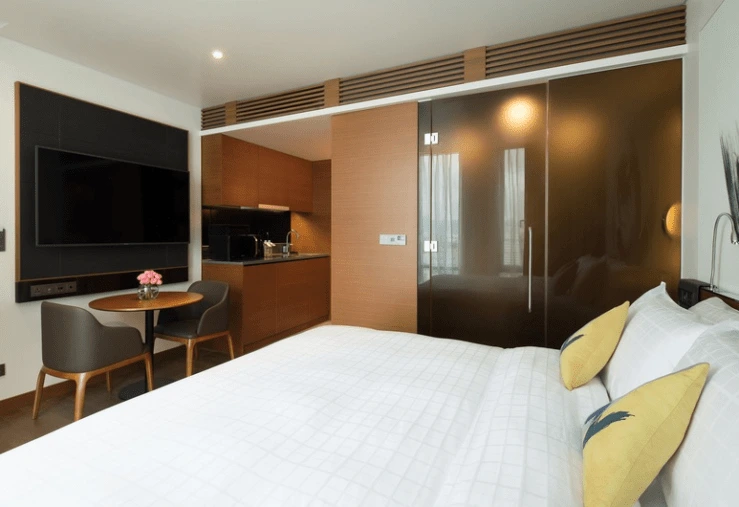 객실은 크게 여섯 가지 타입으로 나뉜다. 스튜디오부터 1~4 베드룸 아파트먼트, 펜트하우스가 있다. 기본 타입인 스튜디오 수페리어를 살펴보면, 침실과 거실을 통합한 형태로 설계됐다.