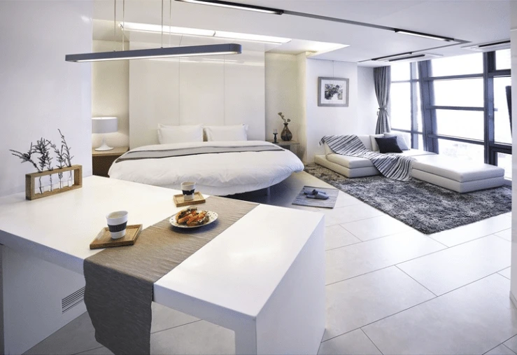 콤팩트한 빌트인 주방은 넉넉한 생활공간을 제공한다. 특히 할리우드 베드는 더블과 트윈 침대로 동시 구현이 가능하다.