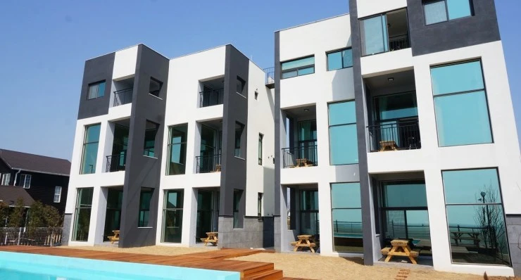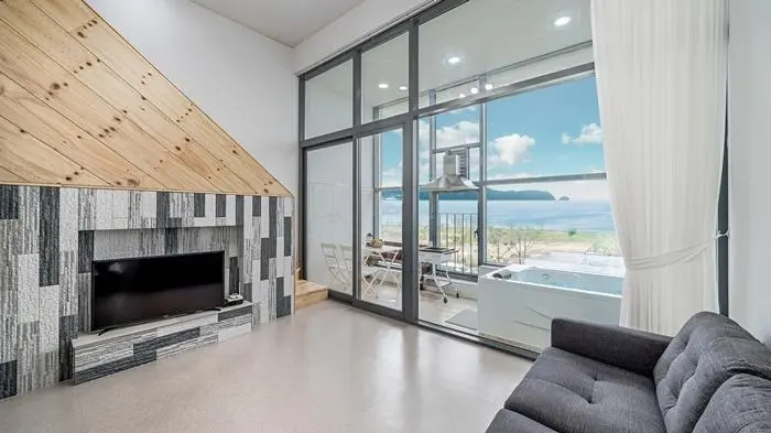 바닷가 바로 앞에 위치한 라메르 르시엘 펜션은 넓은 정원과 바다 전망을 동시에 조망할 수 있다. 프렌치 감성의 깔끔한 외관과 파스텔톤의 객실에는 모두 스파가 구비돼 무료로 즐길 수 있어 로맨틱한 커플 여행에 제격이다.