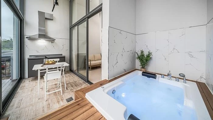 스파와 전기 그릴과 미니 부엌이 마련된 개별 테라스가 객실에 마련되어 있어 연인과 함께 프라이빗한 시간 보낼 수 있다. 신축 펜션답게 시설도 최고급에 깔끔한 건 물론이다.