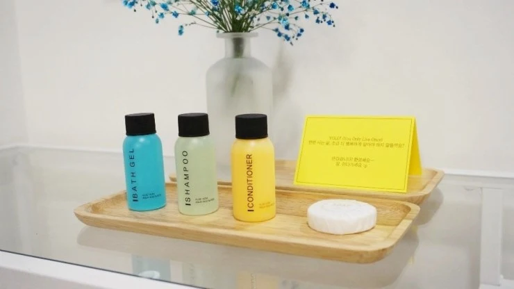 욕실에는 샤워부스가 설치되어 있다. 어메니티로는 샴푸, 린스, 바디클렌저, 비누, 헤어드라이어 수건 등이 준비된다. 칫솔, 치약은 요청시 비대면으로 전달해준다. 센스만점!! 그 밖에 개인용품은 개별적으로 준비해야 한다.