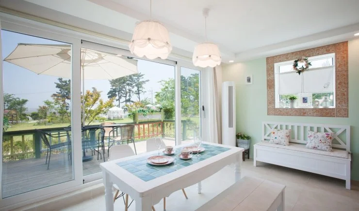 화이트와 우드톤이 잘 어우러진 자연스러운 인테리어를 자랑하는 대부도 펜션 어스20은 바로 앞 푸른 잔디와 바다가 어우러져 그림 같은 분위기를 풍긴다. 바다 전망까지 감상할 수 있어 커플 숙소로 안성맞춤인 곳이다.