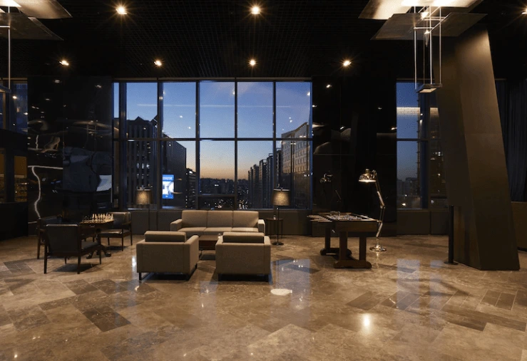 로비는 9층에 자리했다. 같은 층에 크리에이티브 라운지와 피트니스 센터, 세븐일레븐 편의점이 있다. 이외 글래드 마포 부대 시설로는 세가프레도 카페와 바, 미팅룸, 연회장 등을 갖췄다.