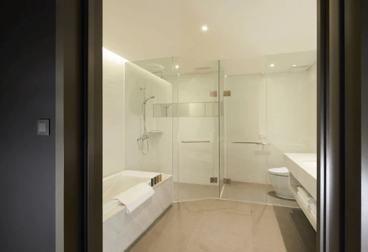 욕실은 객실 타입별로 다르다. 글래드 하우스에는 샤워부스와 욕조, 비데가 설치돼 있다. 어메니티로는 샴푸와 컨디셔너, 바디워시, 페이스 타월, 베스 타월, 슬리퍼, 헤어드라이어가 제공된다.