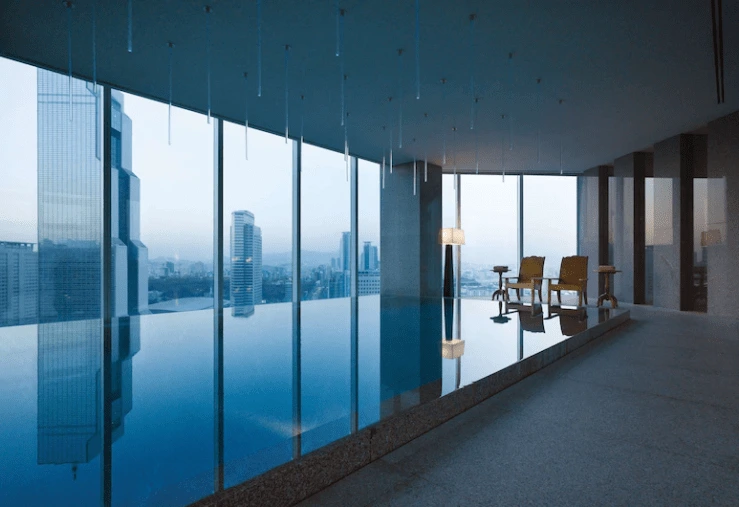 화강암으로 만들어진 실내 수영장은 인피니티 풀 스타일로 꾸며졌다. 전면 창을 통해 들어오는 자연 채광으로 매시간 색다른 분위기를 느낄 수 있다. 오후 7시 이후에는 성인만 입장 가능하니, 조용한 호캉스를 원하면 참고하자.