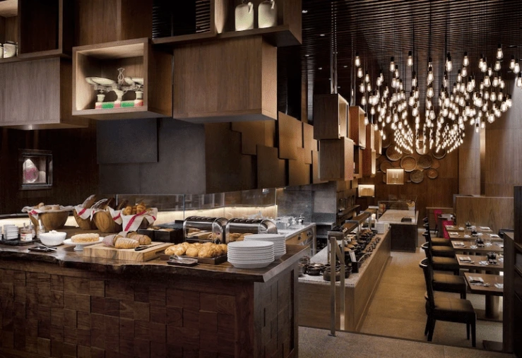 조식은 2층 레스토랑 코너스톤에서 오전 7시부터 10시까지 운영된다. 투숙객 안전을 위해 1~3부로 시간대를 나눴다. 본래 뷔페로 제공됐으나, 현재는 메뉴판을 보고 각각 원하는 음식을 주문하는 방식이다.