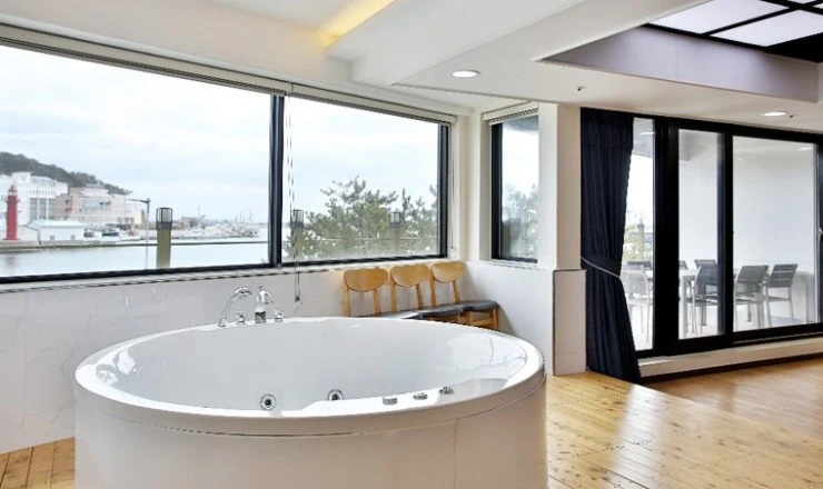 바다가 보이는 거실에는 4인용 실내 스파가 설치돼 있다. 실내에 설치돼 있어 계절과 상관없이 겨울철에도 따뜻하게 즐길 수 있다. 그뿐만이 아니라 바다가 바로 보이는 개별 테라스에는 야외 테이블과 대형 가스 그릴이 설치돼 있어서 바비큐 파티까지 즐길 수 있다. 체크인은 오후 3시부터 가능하고, 체크아웃은 오전 11시까지 마무리하면 된다.
