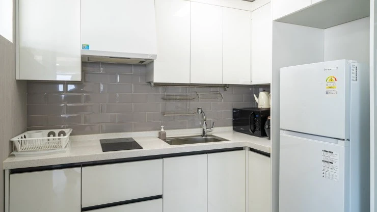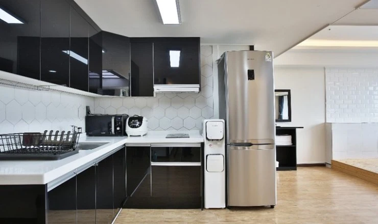 냉장고, 냉온 정수기, 전기쿡탑, 전자레인지, 냄비, 프라이팬, 밥솥, 조리도구 일체가 준비돼 있으니 친구들과 함께 맛있는 파티 음식 만들어 보자.