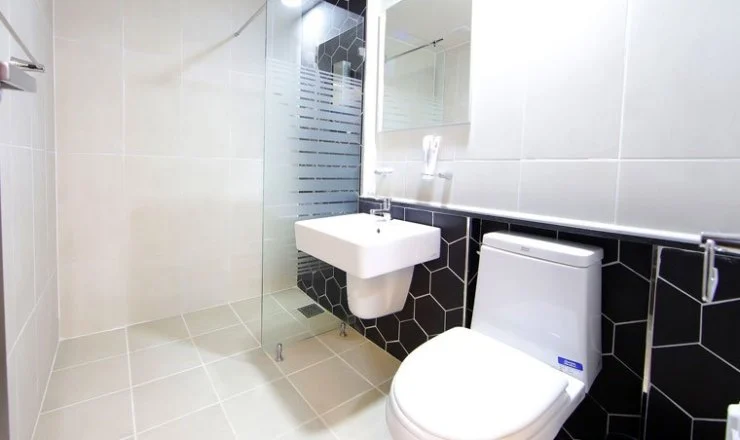 깔끔한 욕실에는 샤워부스가 설치되어 있고 샴푸, 바디샴푸, 비누, 치약, 칫솔, 수건, 바디 타월, 헤어드라이기가 어메니티로 준비돼 있다.