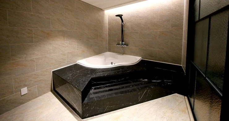 패밀리 스위트 월풀 객실에는 이름 그대로, 월풀 욕조가 설치돼 있다. 아이들이 물놀이 하기에 넉넉한 크기이다. 어메니티로는 샴푸와 컨디셔너, 바디워시, 바디로션, 비누, 덴탈 세트 등이 제공된다.