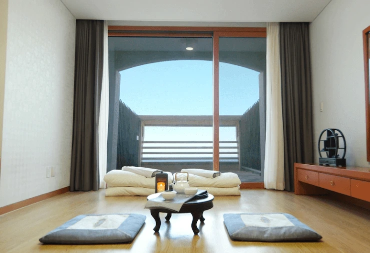 어린아이를 동반한 가족 여행객의 취향을 완벽하게 반영한 객실이다. 한옥의 대청마루와 같은 넓은 테라스 뒤로는 동해가 한눈에 들어온다. 3층이지만 호텔 지대가 높아, 객실 안에서 일출을 볼 수도 있다.