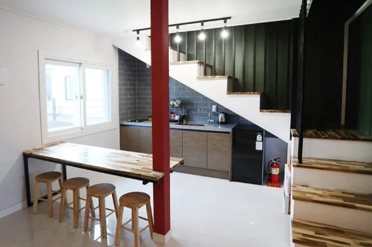 복층형 구조로 1층은 거실과 주방, 테라스, 복층은 침실로 구성되어 있다. 간단한 취사가 가능하며 조리도구와 식기도 잘 갖춰져 있다. 최대 4인까지 숙박이 가능하며 24개월 미만은 무료로 추가가 가능하다.