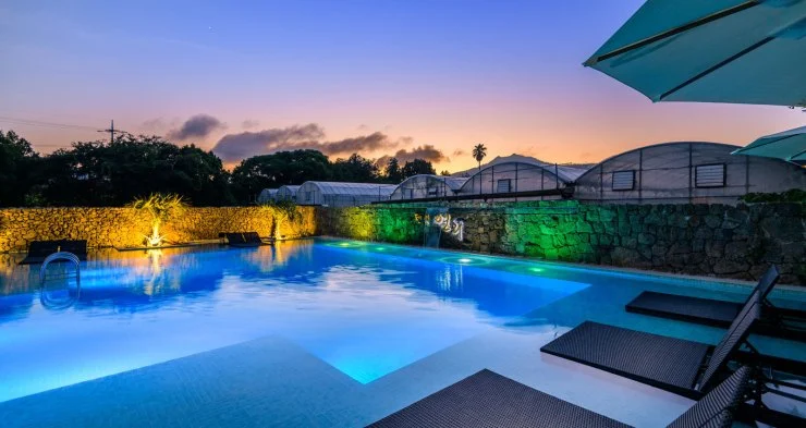 제주 까르마 풀빌라는 프라이빗하게 즐길 수 있는 럭셔리 제주 펜션입니다. 제주시에 위치해 이마트, 제주공항과도 가까워 편리해요. 아르떼 뮤지엄은 20분, 휴애리 자연생활공원은 46분 정도 소요돼요.