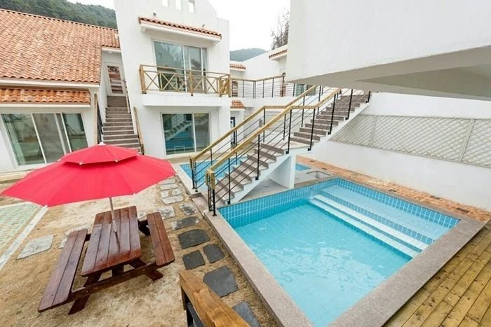 부대시설로는 겨울철에는 운영되지 않지만, 야외 수영장이 두 개나 준비돼 있다. 그뿐만이 아니라 객실마다 개별 바비큐 공간이 마련돼 있다. 숯과 그릴은 2인~4인 기준 2만 원만 추가하면 된다. 체크인은 오후 3시 이후, 체크아웃은 오전 11시까지이다.