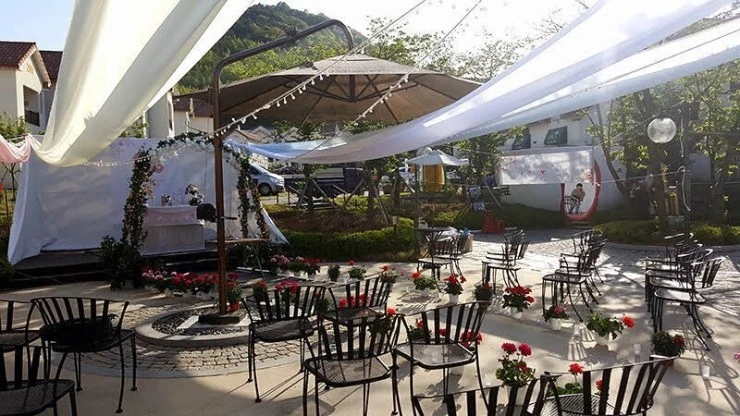 부대시설로는 야외 바비큐장이 준비되어 있다. 2인 기준 2만 원만 추가로 결제해 주시면 숯과 그릴이 제공된다. 그외 야외 결혼식장도 준비되어 있다. 체크인은 오후 3시부터 가능하고, 체크아웃은 마지막 날 오전 11시까지 마무리하면 된다.