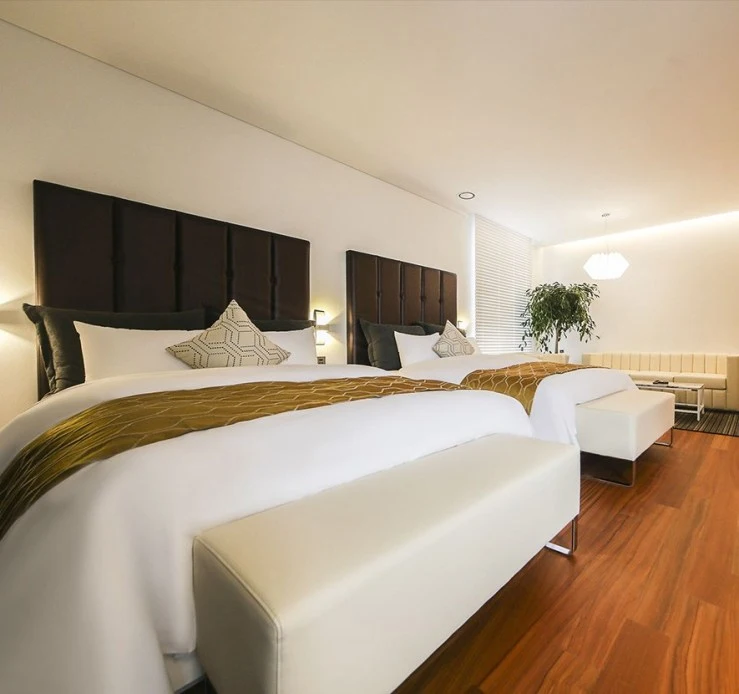 피제이 명동은 전 객실에 욕조가 설치되어 있다. 기본 객실에도 예외가 없어 가성비 좋은 서울 욕조 호텔로 추천하고 싶다. 객실은 모던하고 편안한 분위기이다. 트리플, 쿼드, 패밀리 등 다양한 옵션도 보유하고 있어 친구, 가족과 함께 가기에도 좋다. 현재 코로나19로 인해 피트니스, 라운지, 레스토랑 런치는 영업이 임시 중단되었으니 참고하자.