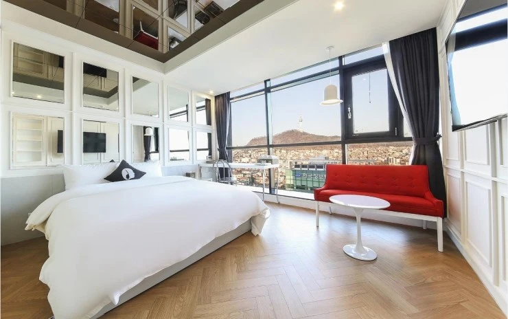 호텔 더 디자이너스 서울역점은 수페리어 더블룸을 제외한 모든 객실에서 반신욕을 즐길 수 있다. 아름다운 시티뷰와 야경도 감상할 수 있어 서울 욕조 호텔로 추천한다. 15층 이상 객실에서는 N서울 타워 전망도 누릴 수 있다. 전문 디자이너들이 만든 인테리어를 구경하는 재미도 쏠쏠하다.