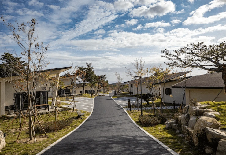 로비와 리셉션은 웰컴센터 1층에 자리했다. 부대 시설로는 편의점과 화암사 트레킹 코스, 하늘 전망대, 힐링 해먹숲, 천진천 워터데크, 사슴농장, 양 목장, 신선호 위시트리, 스위스 카우벨 로드, 포토존 등을 갖췄다.