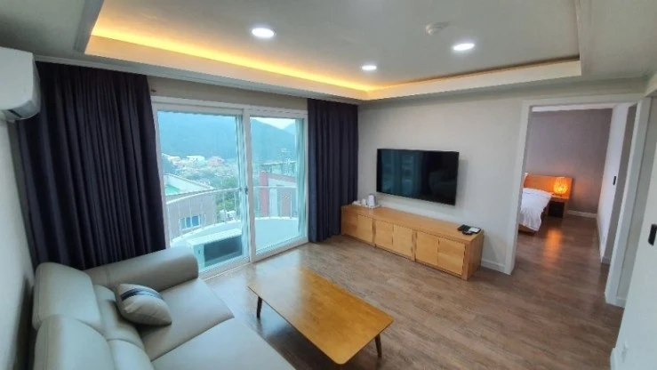 아이와 함께 울산 더뱀부호텔 찾은 가족 여행자에게 인기가 높은 객실이다. 침실과 거실, 욕실로 구성됐다. 테라스로 나서면 주변 경관이 한눈에 들어온다. 욕실에는 대형 가족탕을 갖춰, 룸콕 호캉스 만으로 즐거운 시간을 보낼 수 있다.