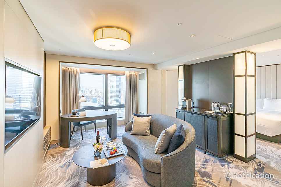 제가 투숙했던 객실은 그랜드 인터컨티넨탈 파르나스의 시그니처 객실이라고 할 수 있는 주니어 스위트 룸으로 거실과 침실이 어느정도 구분되어 있는 스위트 타입입니다. 이름만 주니어 스위트 룸이지 사실 동급 타 호텔의 스탠다드 스위트 룸과 비교해도 비슷한 수준의 크기로 충분히 만족스럽습니다.