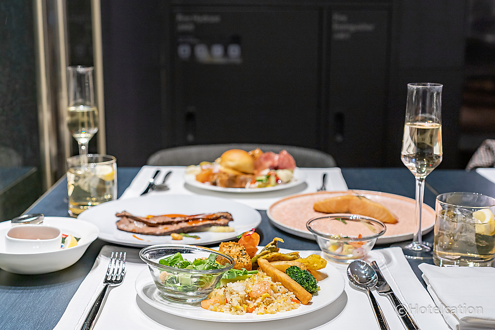 제공되는 음식들의 품질도 예사롭지 않습니다. 핫 푸드 종류가 많아 저녁 식사 대용으로도 충분한 구성이에요.