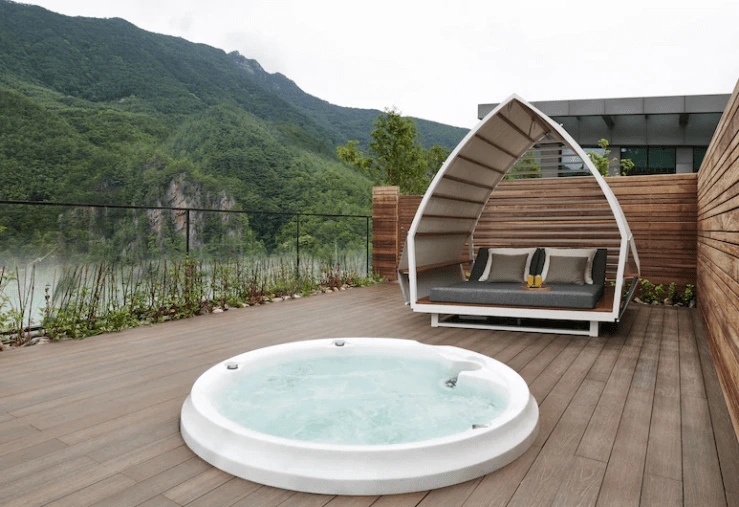 올스테이 에디터가 강력 추천하는 아쿠아 클럽은 정선 파크로쉬 리조트에서 빼놓을 수 없는 호캉스 포인트이다. 실내·외 스파와 사우나, 자쿠지로 구성됐다. 입장 시, 마스크 착용은 필수예요. 방수용 챙겨오자.