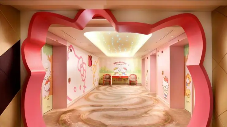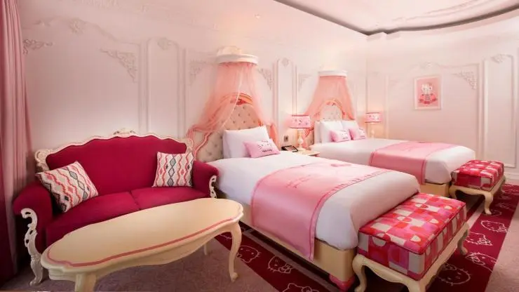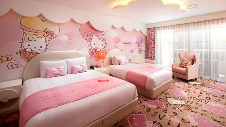 헬로키티 캐릭터룸은 인테리어에 따라 키즈와 프린세스, 레이디스 룸으로 타입이 나뉜다. 여러 번 묵어도 색다른 매력이 느껴진다. 올스테이 옵션에 따라 헬로키티 인형을 선물 받을 수도 있다.