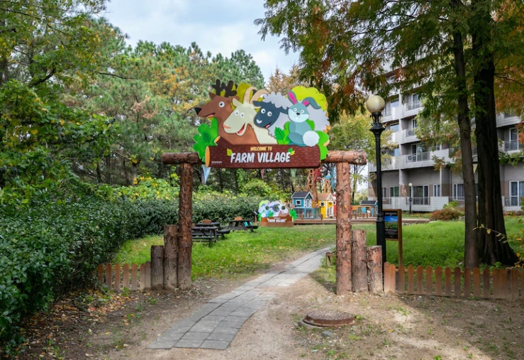 리조트 야외 공간에는 상시 개방되는 키즈 공간을 마련해 놨다. 프리스틴관 뒤편 팜 빌리지에서는 우드 트레인과 귀여운 토끼 친구를 만날 수 있다. 오스틴관 뒤편에는 다양한 놀이기구를 갖춘 키즈 놀이터가 위치했다.