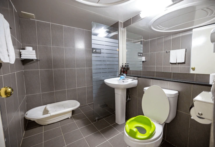 욕실 어메니티로 샴푸와 린스, 바디워시, 바디로션, 비누, 수건이 제공된다. 헤어드라이어도 비치해 놨다. 일회용품인 칫솔과 치약, 면도기 등은 따로 챙겨와야 한다. 깜박했다면 근처 편의점을 이용하자.