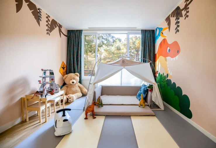 코코몽으로 꾸며진 경주 켄싱턴 키즈룸은 방과 거실, 욕실로 구성됐다. 전체 31평형 크기로 넉넉한 공간을 자랑한다.