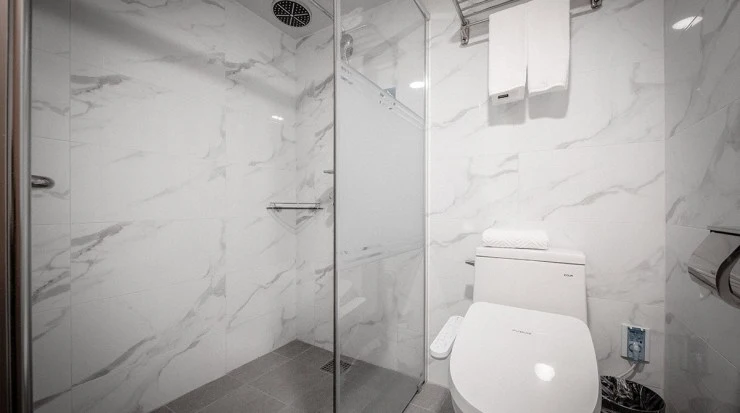 욕실 면적도 넉넉해 사용하기 편리하다. 어메니티는 샴푸, 컨디셔너, 바디워시, 로션, 칫솔 세트 등이 모두 제공된다.
