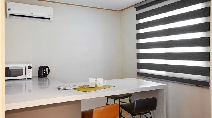 객실 내에는 전자레인지, 커피포트 등이 구비되어 있다. 취사는 불가능하지만 간단하게 음식을 데워먹거나 차를 마시기 좋다. 이유식을 먹어야 하는 유아 동반 가족에게도 유용하다.