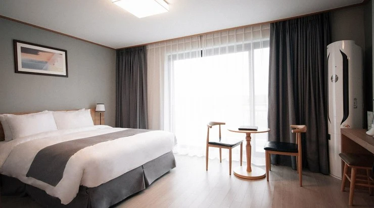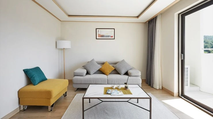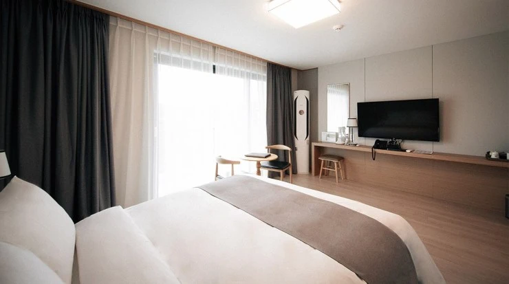 양양 더앤리조트는 디럭스 / 스위트 2가지 객실 타입을 제공한다. 2가지 타입 모두 온돌 객실도 보유하고 있어 가족 숙소로 인기가 많다. 스위트 객실은 넓은 거실과 욕조가 있어 좀 더 여유롭게 이용할 수 있다.