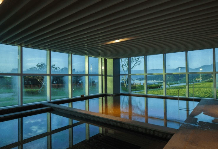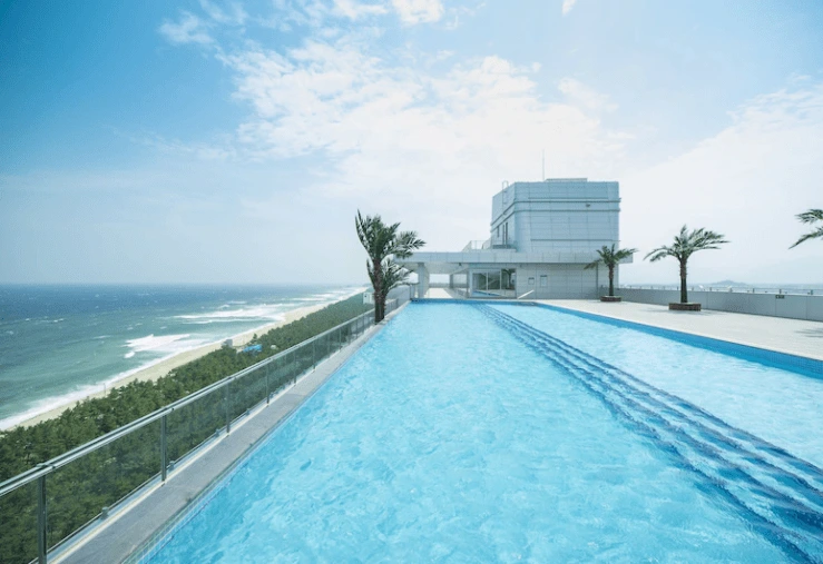 메인 로비에서는 파노라마 전망으로 바다를 조망할 수 있다. 인증샷 장소로 딱이다. 부대시설로는 금진온천과 수영장, 키즈존, 노래방, 스크린 골프, 편의점, 피트니스, 코인 세탁실, VR존 등을 갖췄.