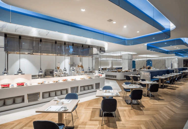 조식은 20층 스카이 라운지에서 오전 7시부터 10시까지 운영된다. 경포해변과 호수의 일몰을 감상할 수 있는 공간이다. 누들바와 에그스테이션이 포함된 뷔페로 제공된다. 요리 신선도가 특히 좋다고 유명하다.