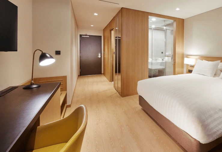 두 타워가 연결된 모양의 스카이베이는 이국적인 외관으로 눈길을 사로잡는다. 가운데 자리한 공간은 바람의 길로 불린다. 우드를 사용한 객실은 따뜻하고 안락한 분위기로 꾸며졌다.