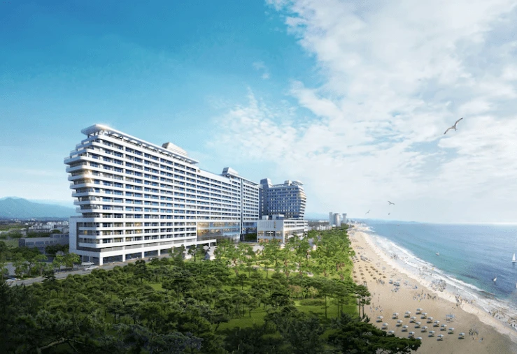 호텔은 푸른 해송 숲과 동해가 만나는 곳에 위치했다. 좌우로 길게 늘어선 외관과 객실 테라스는 주변 경관을 조망하기에 최적의 설계이다. 더불어 부지 면적만 약 1만여 평으로 강원도 내 가장 큰 규모를 자랑한다.