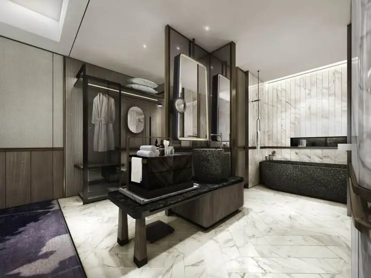 한국적 색채가 아름다운 객실과 대비해, 욕실은 모던하게 꾸며졌다. 시그니처인 검은색 욕조가 인상적이다. 어메니티로는 르 라보 제품이 제공된다. 샴푸와 컨디셔너, 샤워젤, 바디로션, 비누가 포함돼 있다.